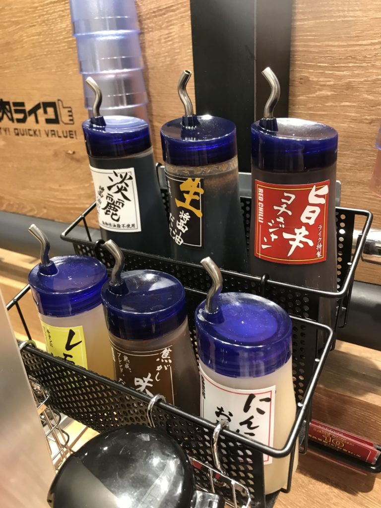 嬉しいのはタレの種類の多さ、どれを使っても美味しい