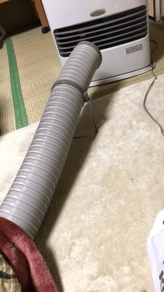 温風ヒーターからの暖かい風をこたつの中に誘い込むホースです