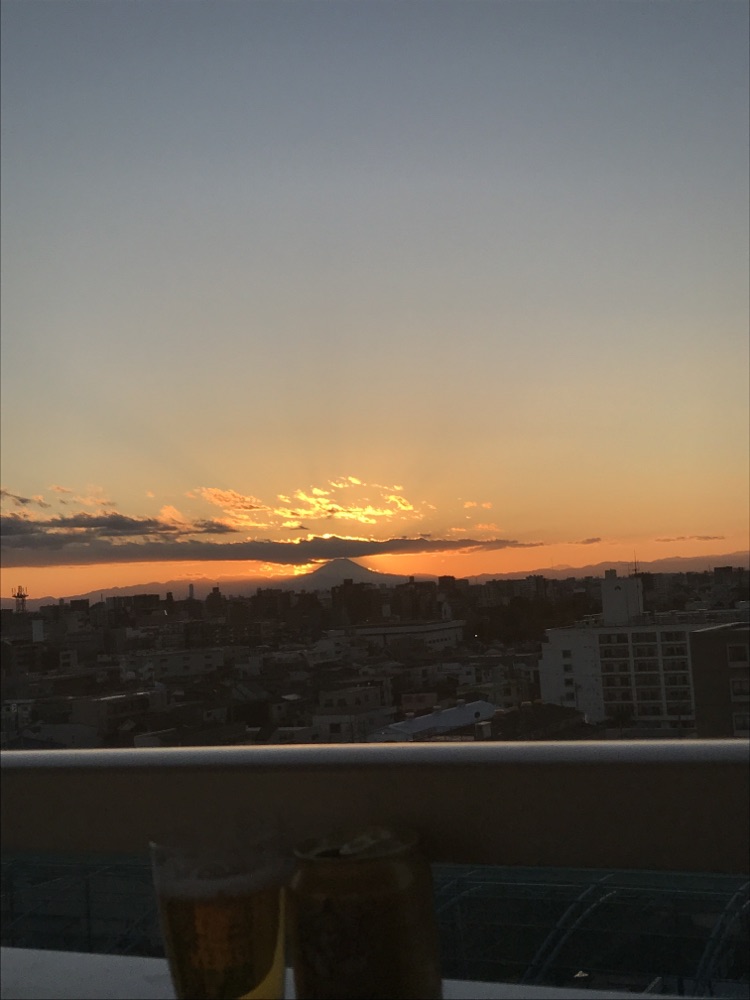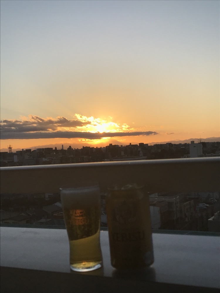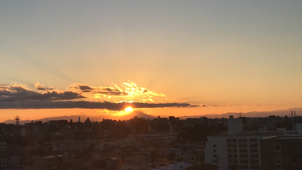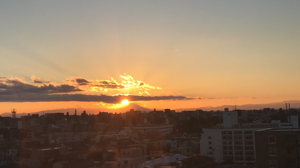 元旦の夕陽を見るために4時前からベランダでスタンバイ