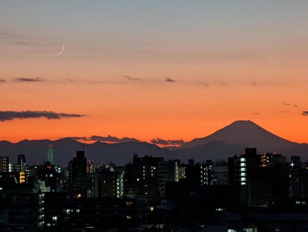ほっそい月が写ってル!じゃありませんか!左の方、見えますか❓😁