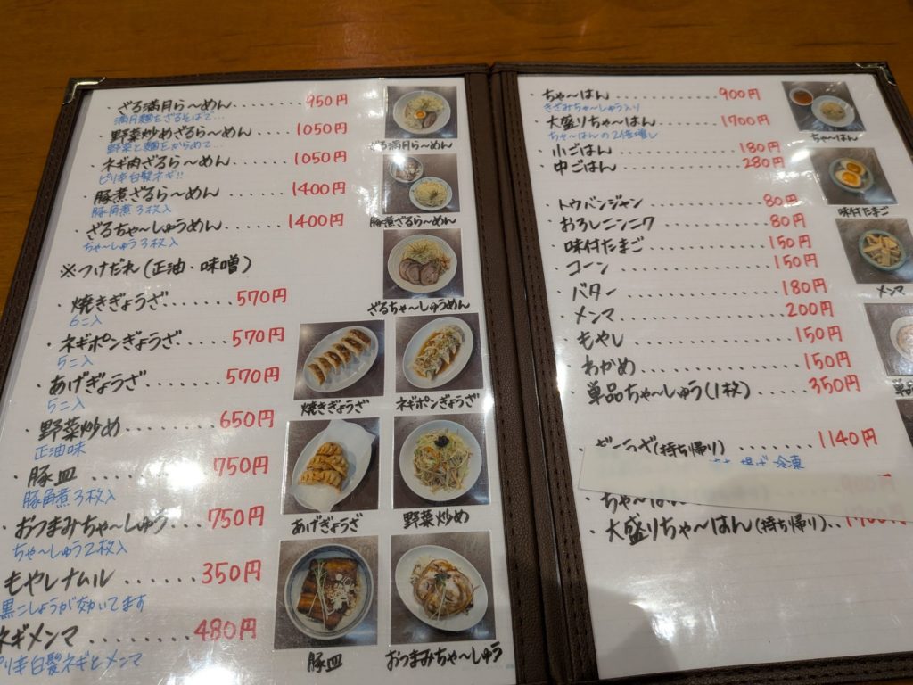メニューの種類が多めのらーめんやさん