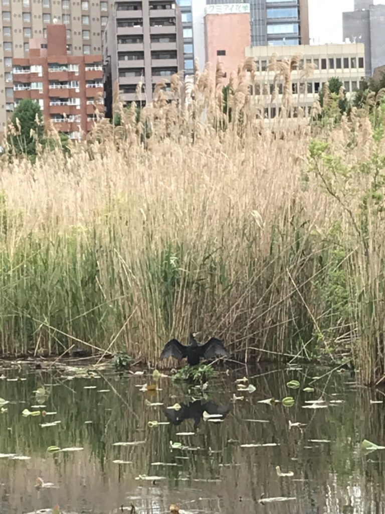 上野には自然がいっぱいで大きな建物が周りに沢山あるのに亀やカワウがのんびりしていて